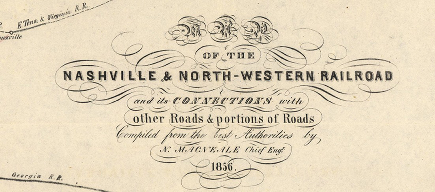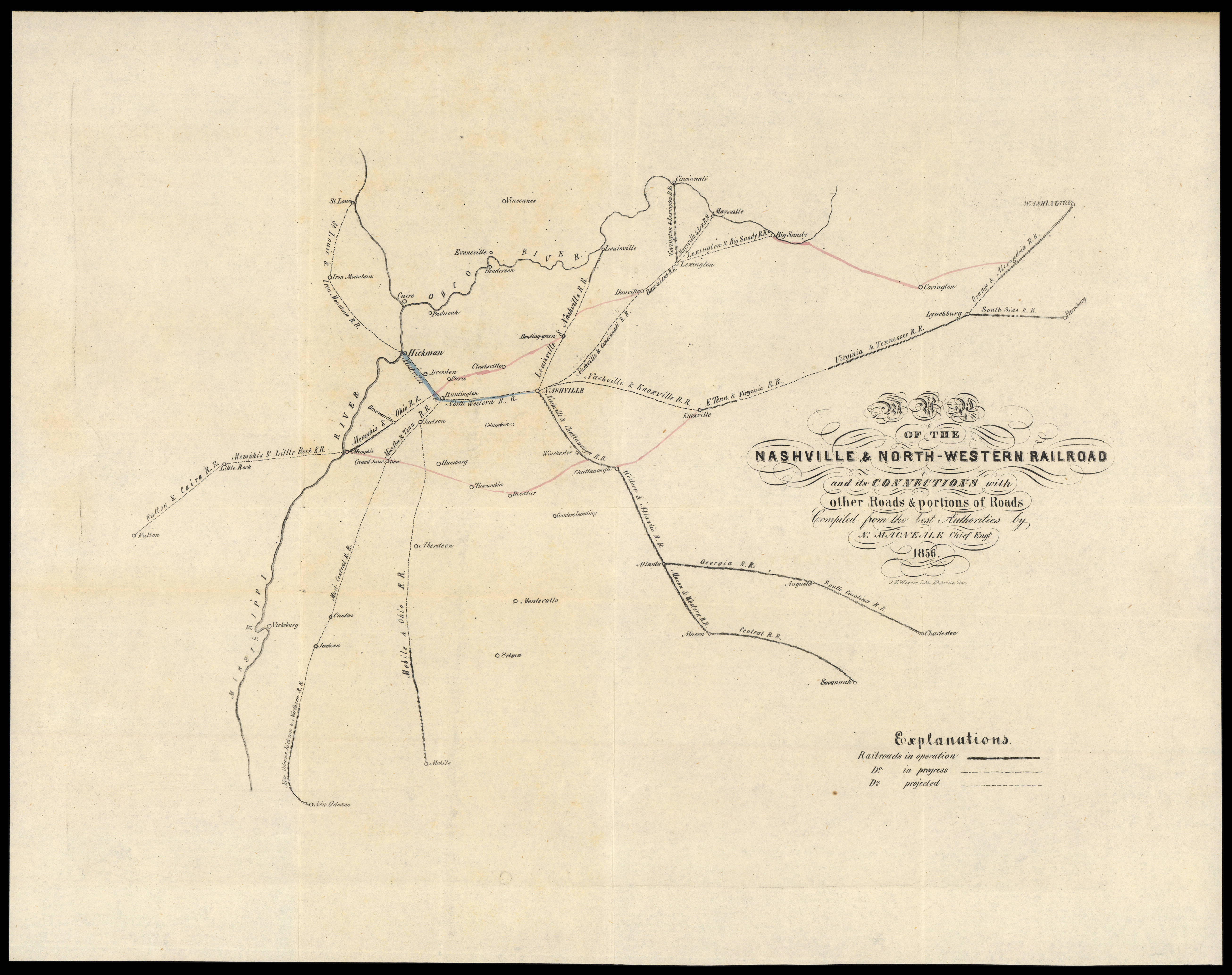 1856 map by N. MacNeale showing the Nashville & Northwestern Railroad route from Nashville to the Mississippi River