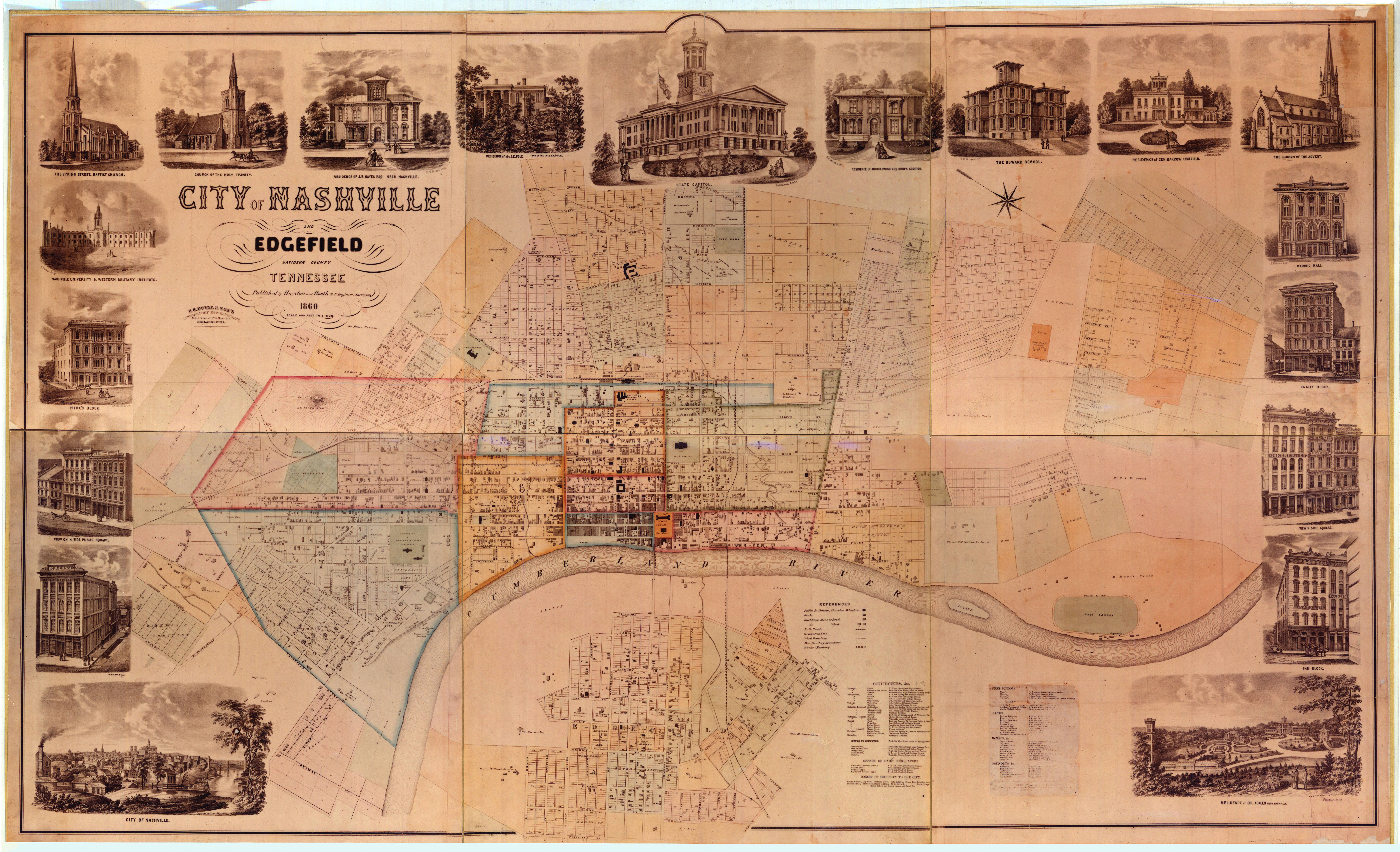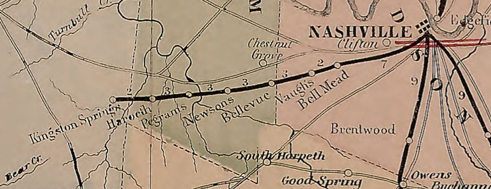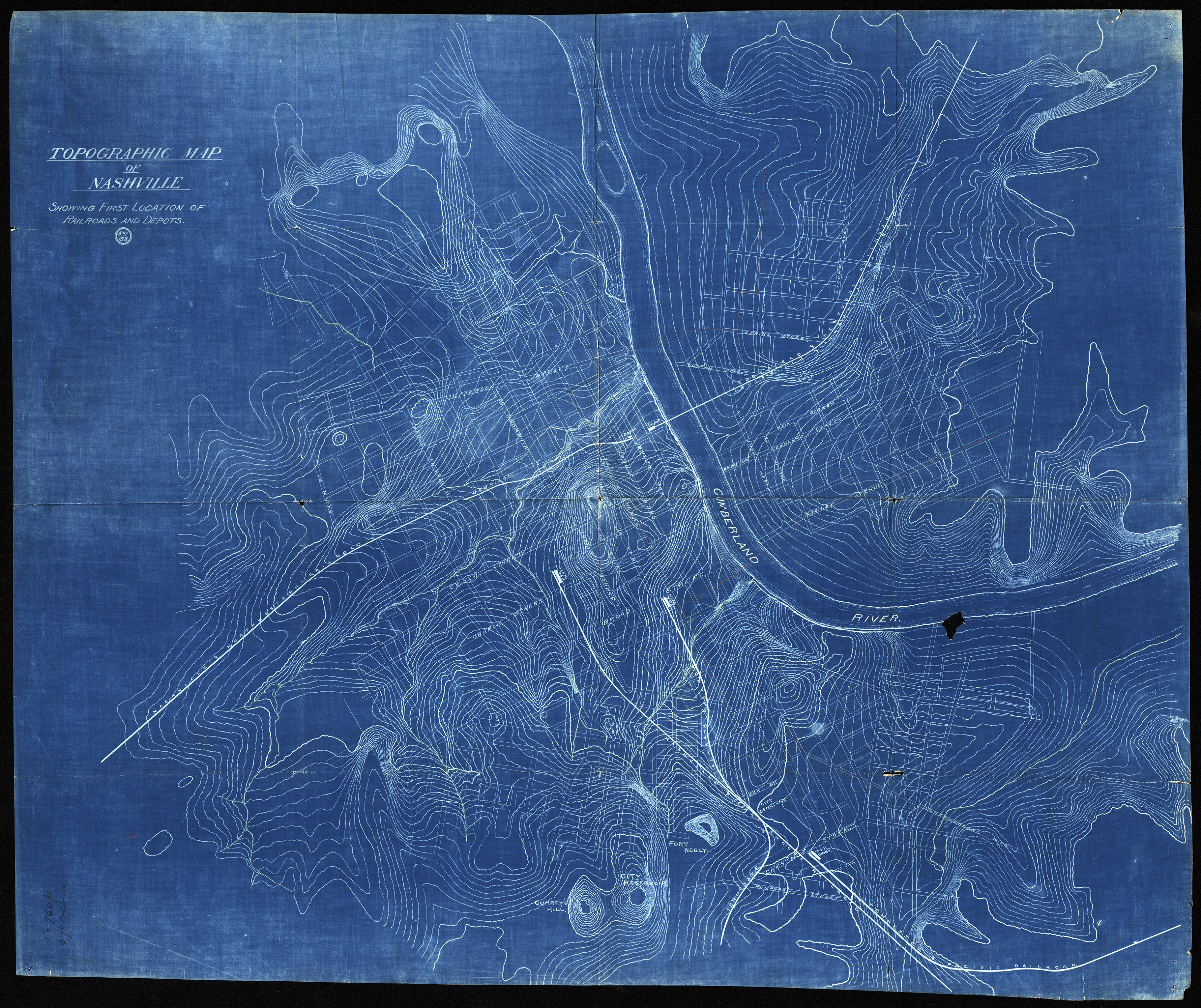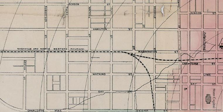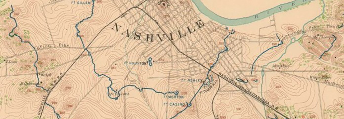 An undated topographical map of the Nashville area showing the Nashville & Northwestern Railroad