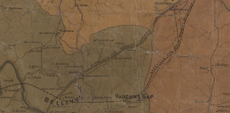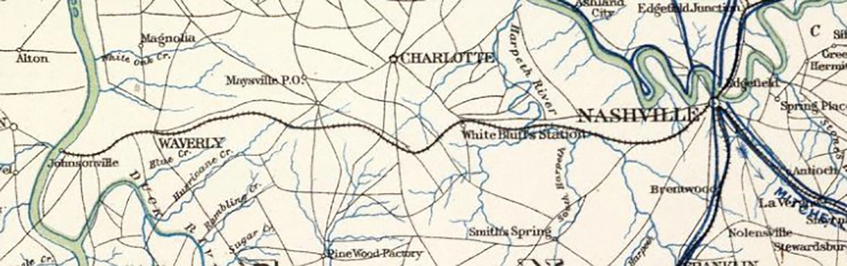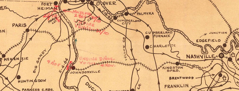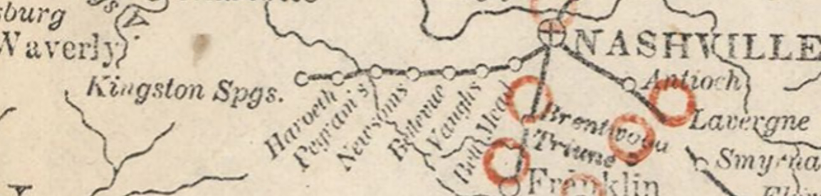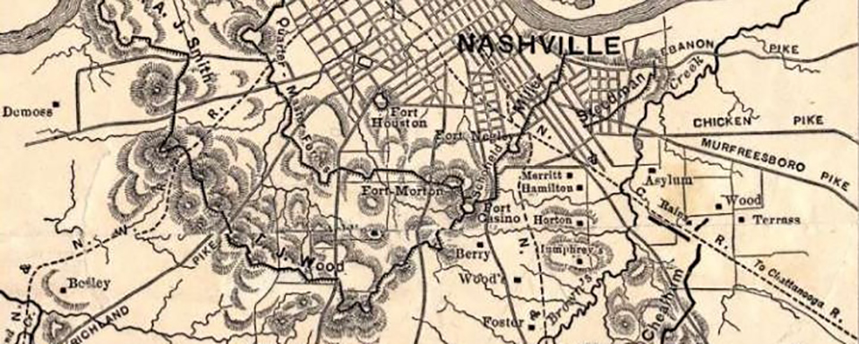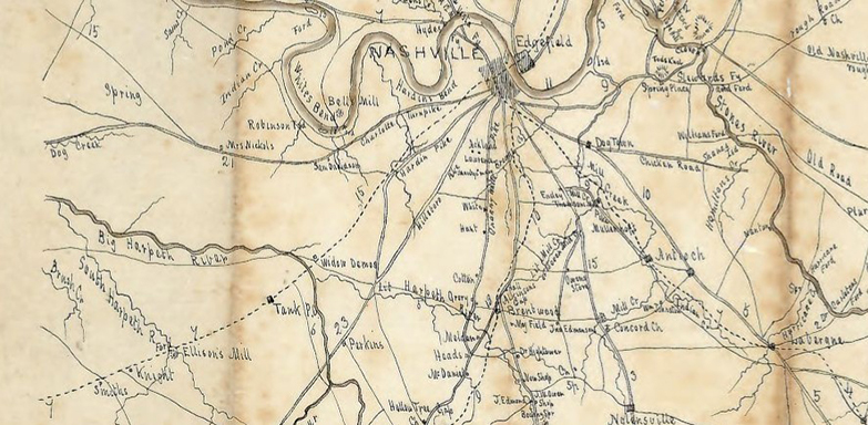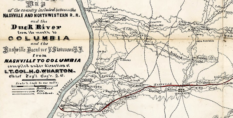1864 map by Lt. Col. Harry C. Wharton showing the Nashville and Northwestern