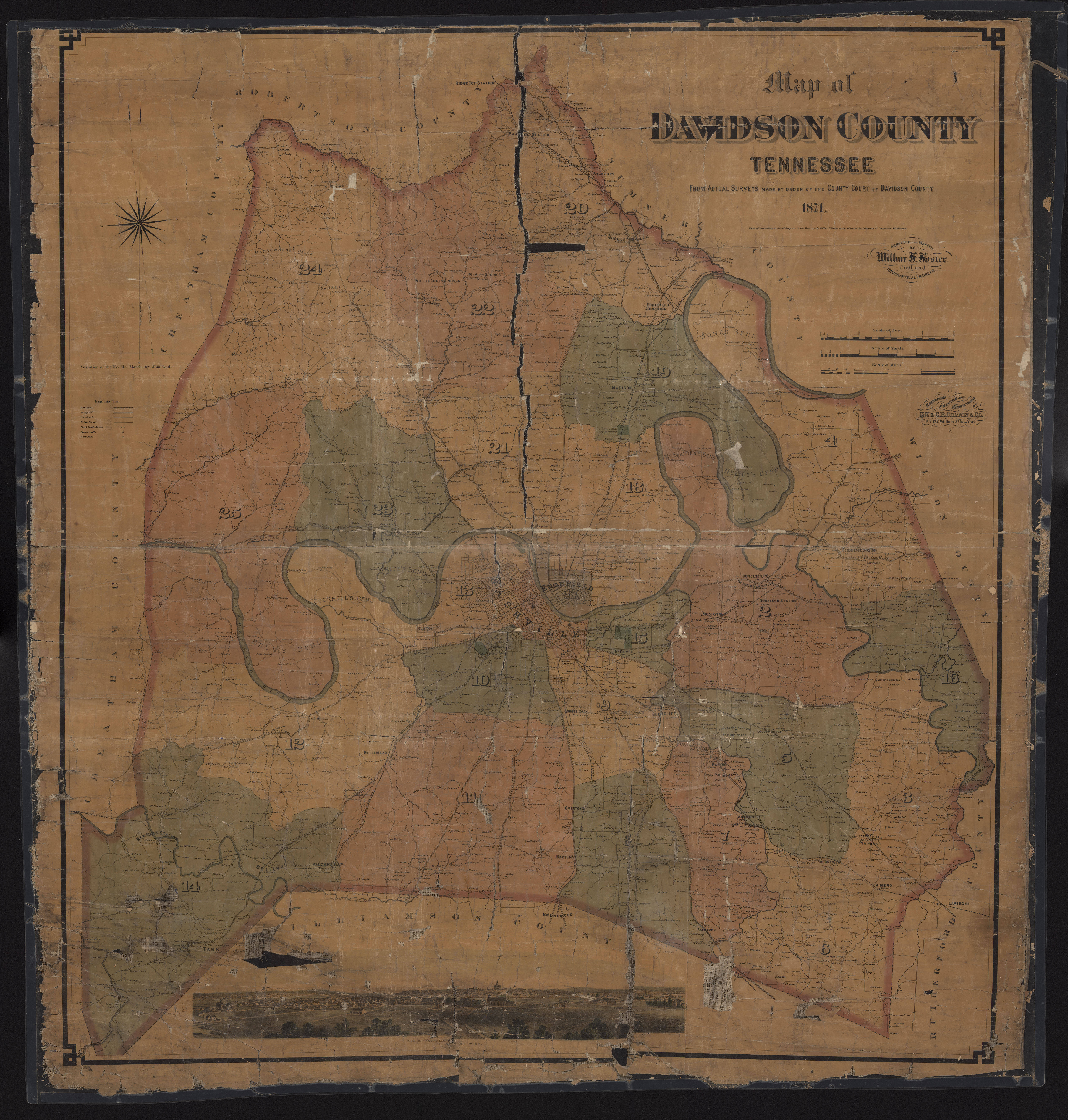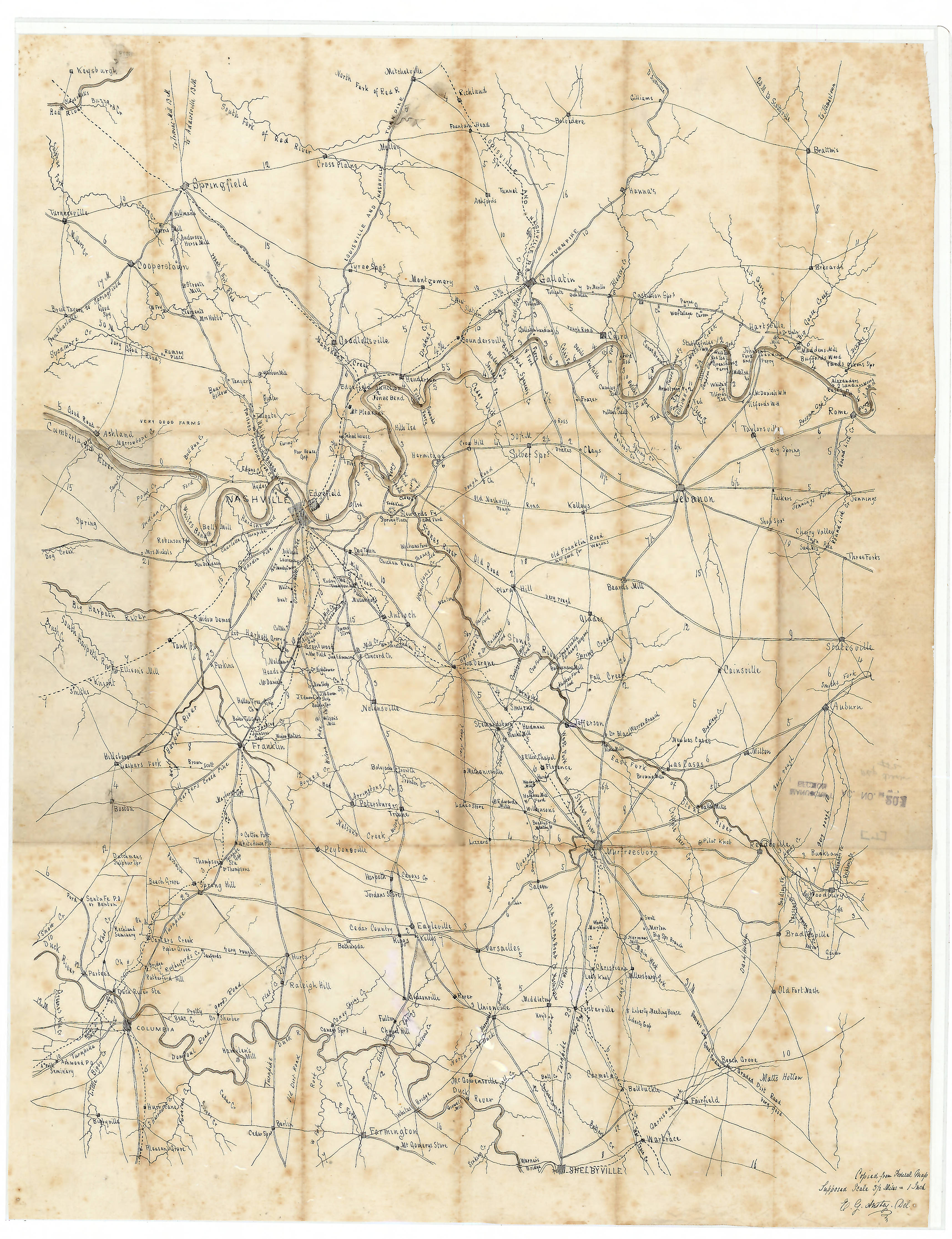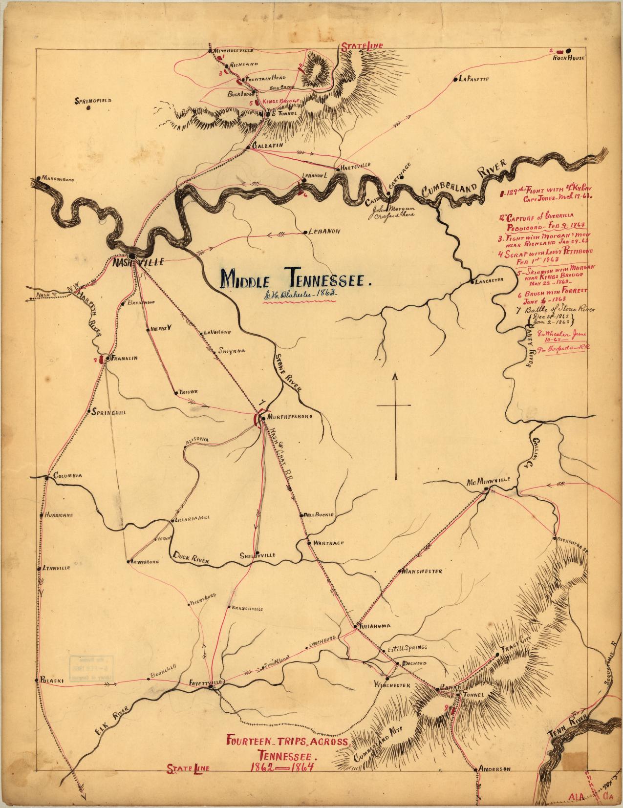 1863 map by William Emery Merrill (1837-1891) showing middle Tennessee (part 1)