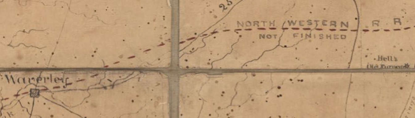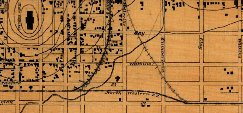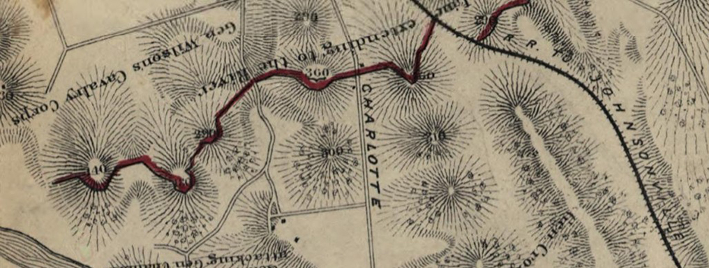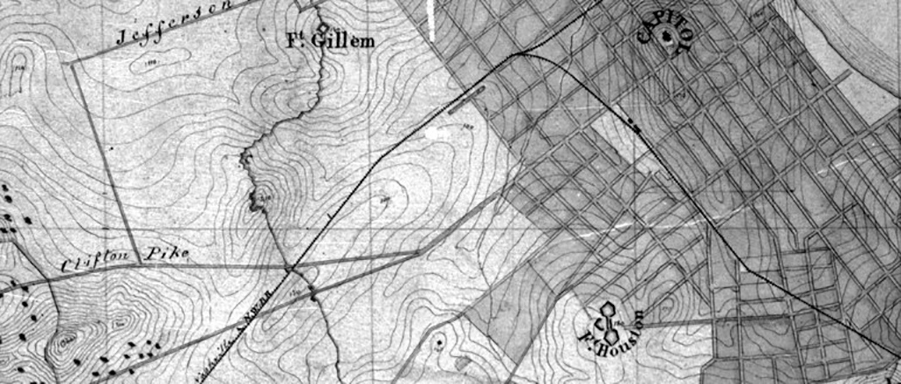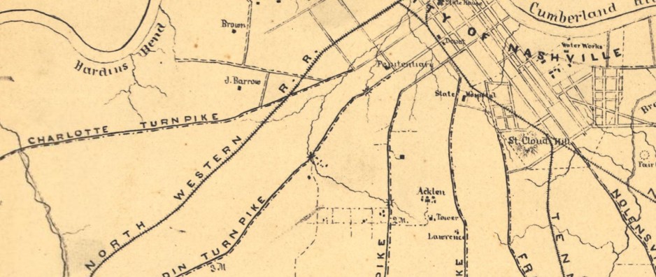 1864 map from John Johnston's Civil War Reminiscences published in 1905. While not showing the railroad it shows the area between Charlotte and Hardin pikes where the railroad was.