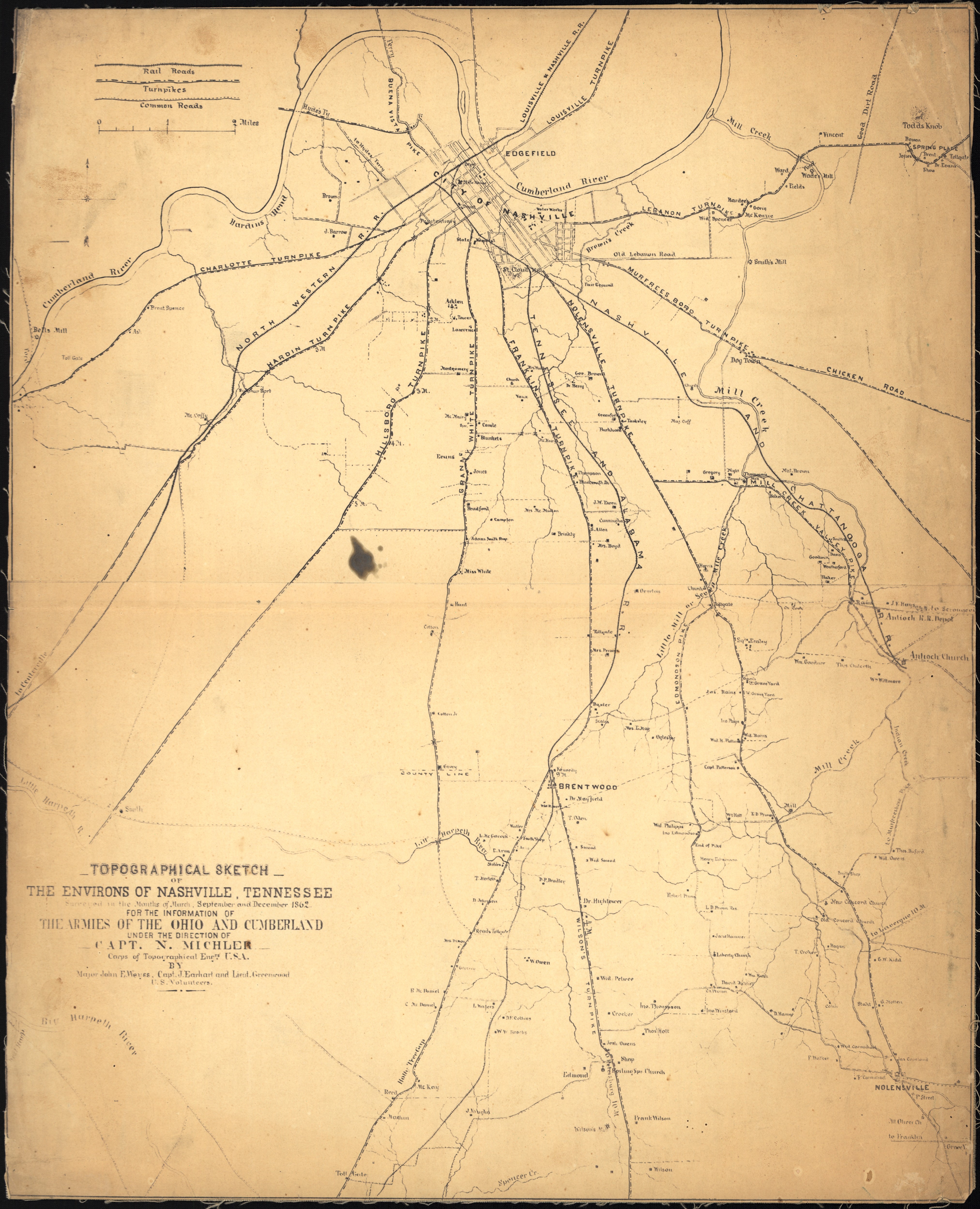 Undated Map of Nashville Tennessee by Orlando Matcalfe Poe, Chief Engrs. Office