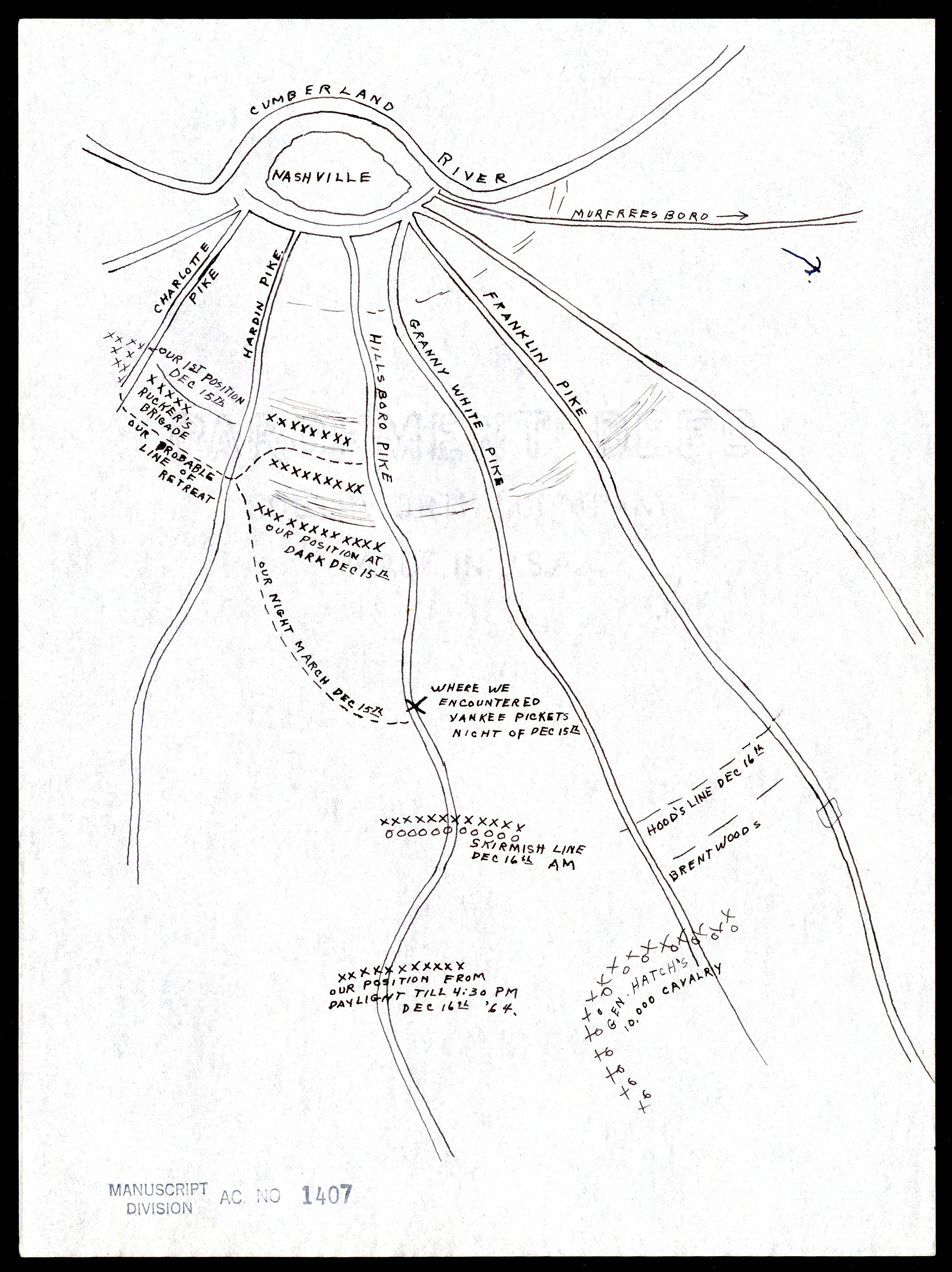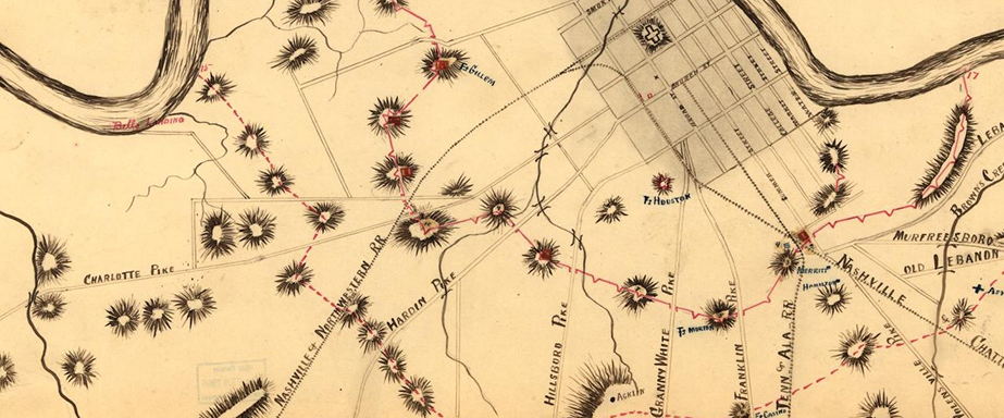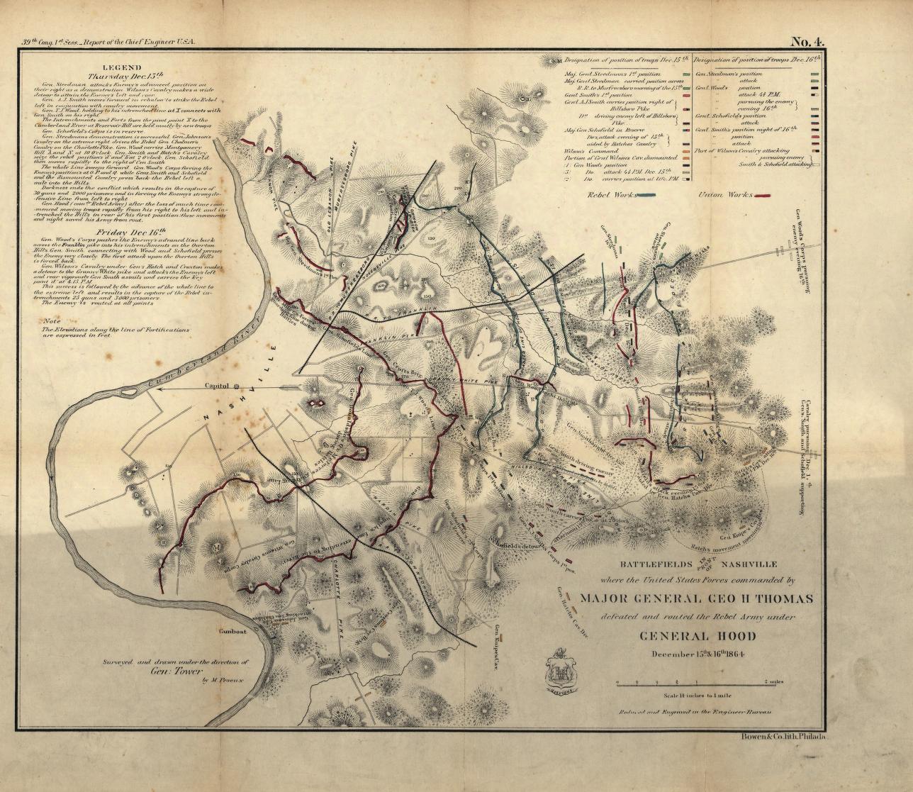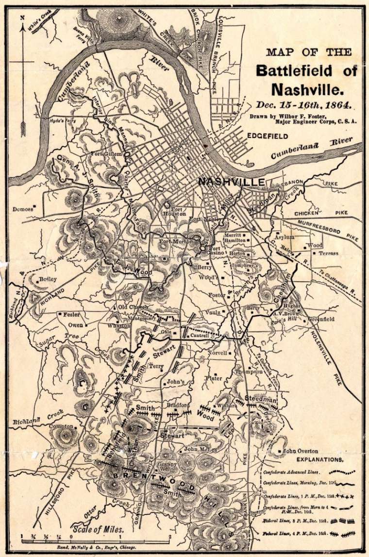 1864 Map of the Battlefield of Nashville. Dec. 15-16th, 1864 by Wilbur Foster, Major Engineer Corps CSA