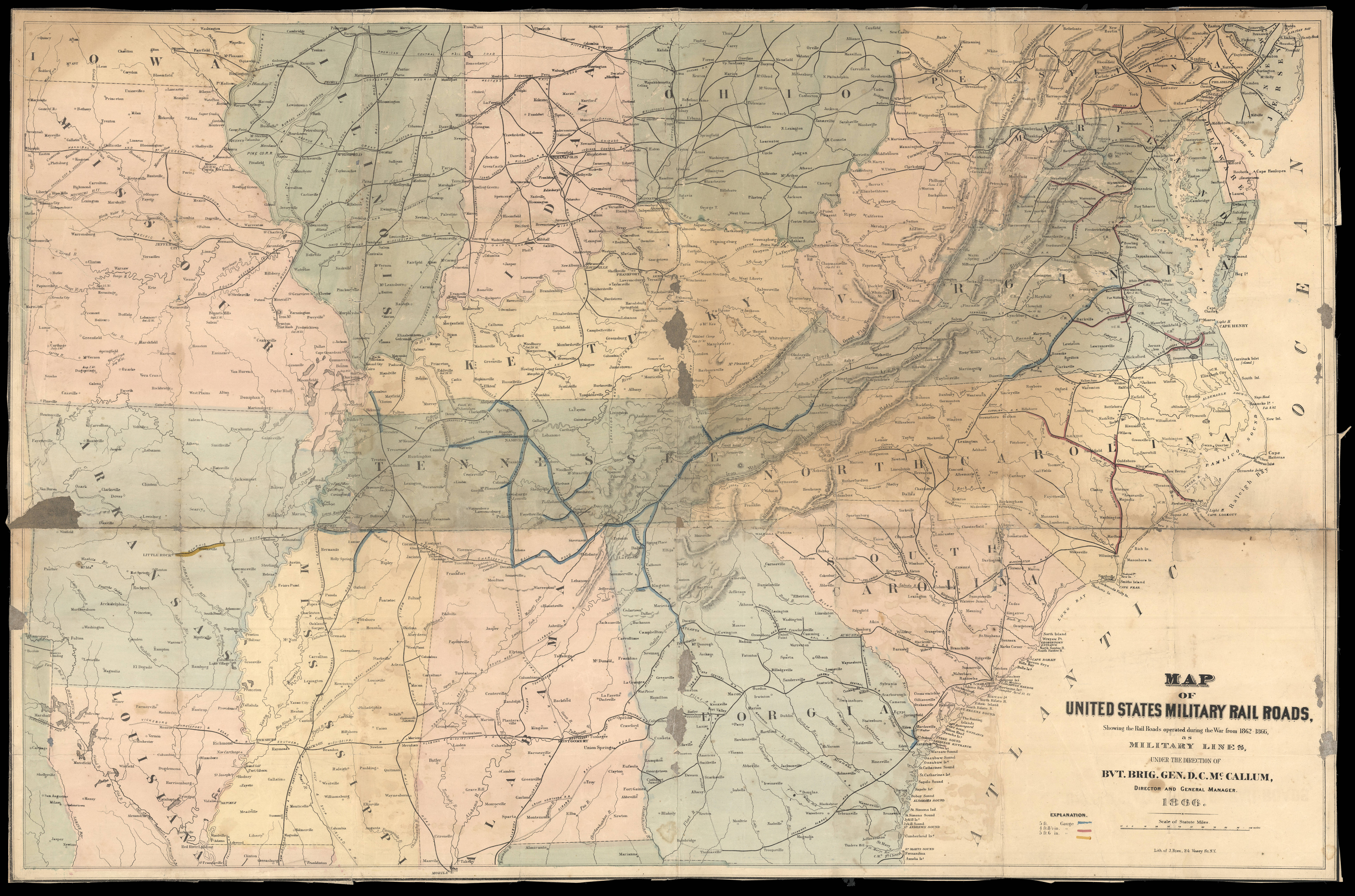 1865 (undated) map originally from Byrd Douglas Papers showing the railroads during the civil war