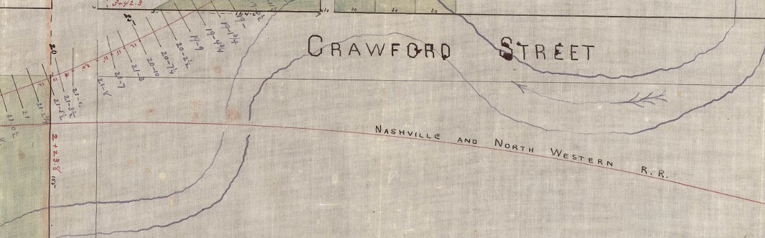 Undated survey map for the Louisville & Nashville Railroad also showing Nashville & Northwestern Railroad